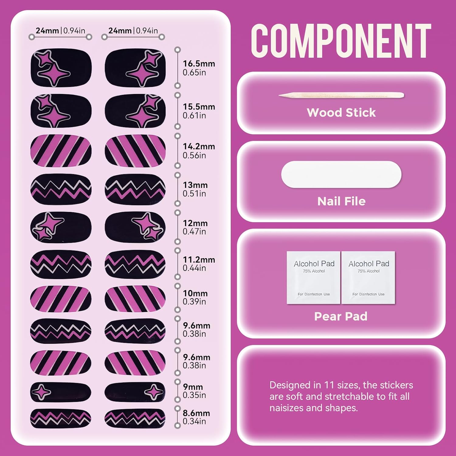 Gloss Nail Strips|Uv Free|22 Pcs,Gel Nail Stickers|Long Lasting Two Weeks and Easy to Apply&Remove|Black Purple Pop