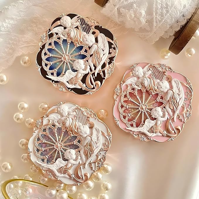 - Artistic Gift: Rose window inspired compact with embossed angels,ideal for gifts or decor