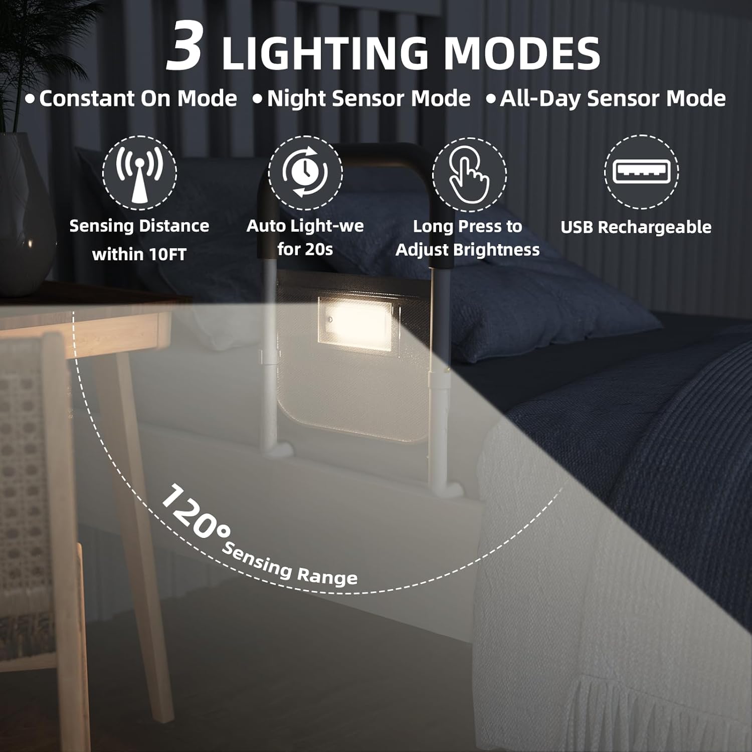 - 𝐌𝐞𝐝𝐢𝐜𝐚𝐥 𝐁𝐞𝐝𝐫𝐚𝐢𝐥𝐬 𝐋𝐢𝐠𝐡𝐭 & 𝐒𝐭𝐨𝐫𝐚𝐠𝐞 𝐏𝐨𝐜𝐤𝐞𝐭: To prevent dangerous falls, our portable handle bedside railing features a sturdy safety LED motion sensor light. This light magnetically attaches to wherever you want to stick, ensuring you have a clear path when going to the bathroom at night. The induction of bright light automatically activates when moving, increasing your safety and peace of mind. The bed handrail is equipped with a practical storage bag, which can be used to store glasses, remote control, books, newspapers and medical supplies.