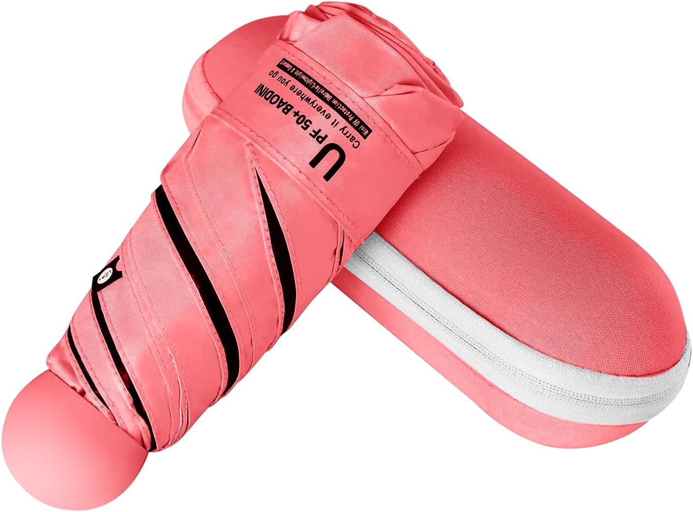 BAODINI Travel Essentials Mini Umbrella for Purse With Case Small Compact UV Sun Protection Lightweight Tiny Pocket Manual Open Close Umbrella for Women Kids and Men Fit Purse Backpack