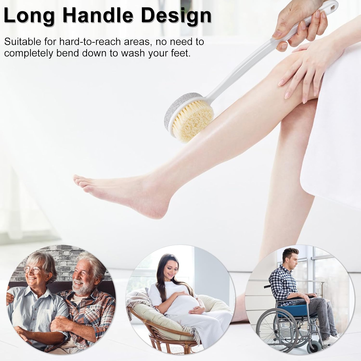 Pumice Stone for Feet with Long Handle (Double-Faced Curved Handle,White, Count, 1.0)
