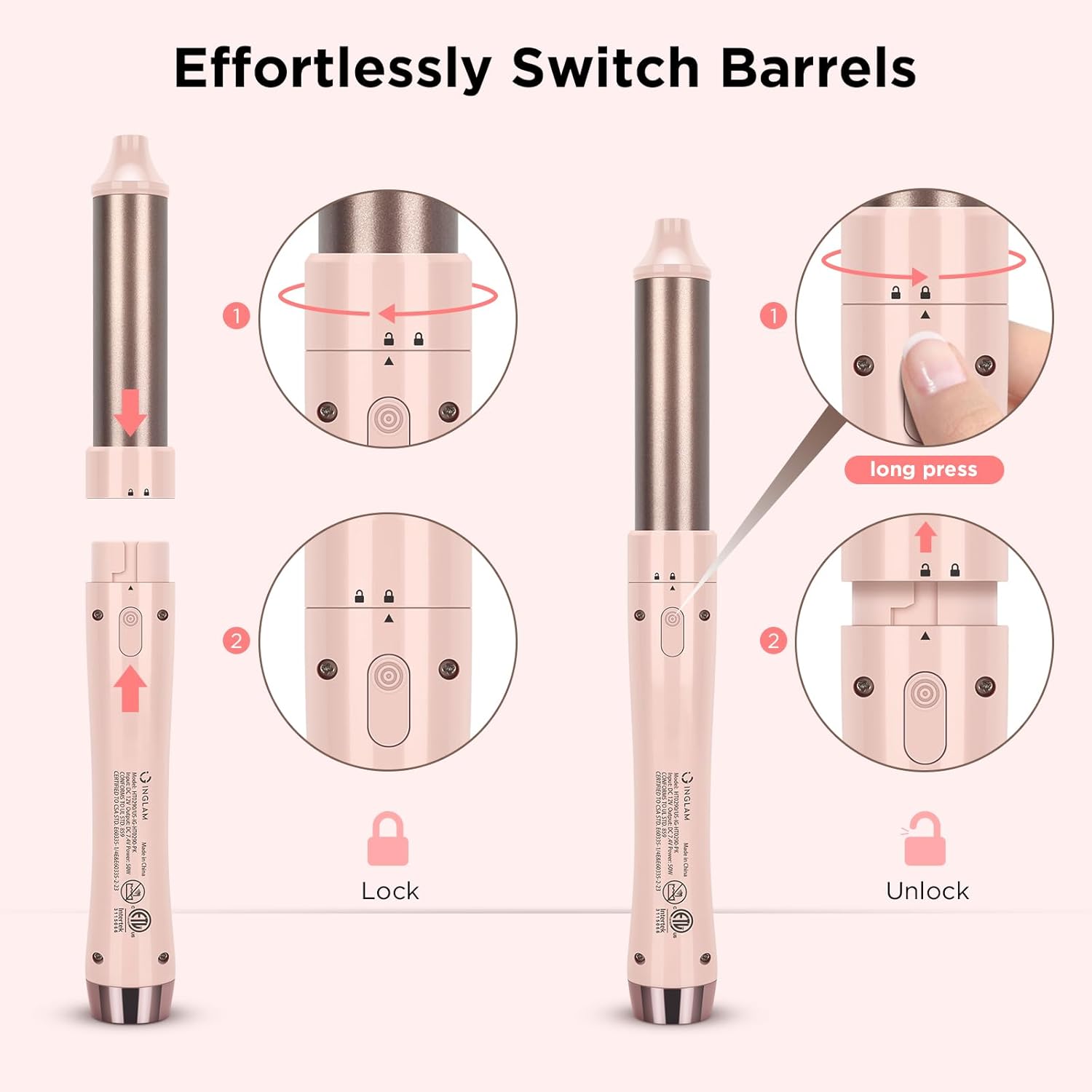 - 3 IN 1 Interchangeable Hair Styling Set & Perfect Gift: Includes one 1" hair straightener barrel, one 1.25" curling wand barrel, and one 1.5" hot round brush barrel. 10 minutes fast to get a professional salon result, saving time and money, and providing more hairstyle options. Perfect gift for your wife or girlfriend, your mother, and your friends. (Please read the instructions before use. It can't be used when it is recharging)