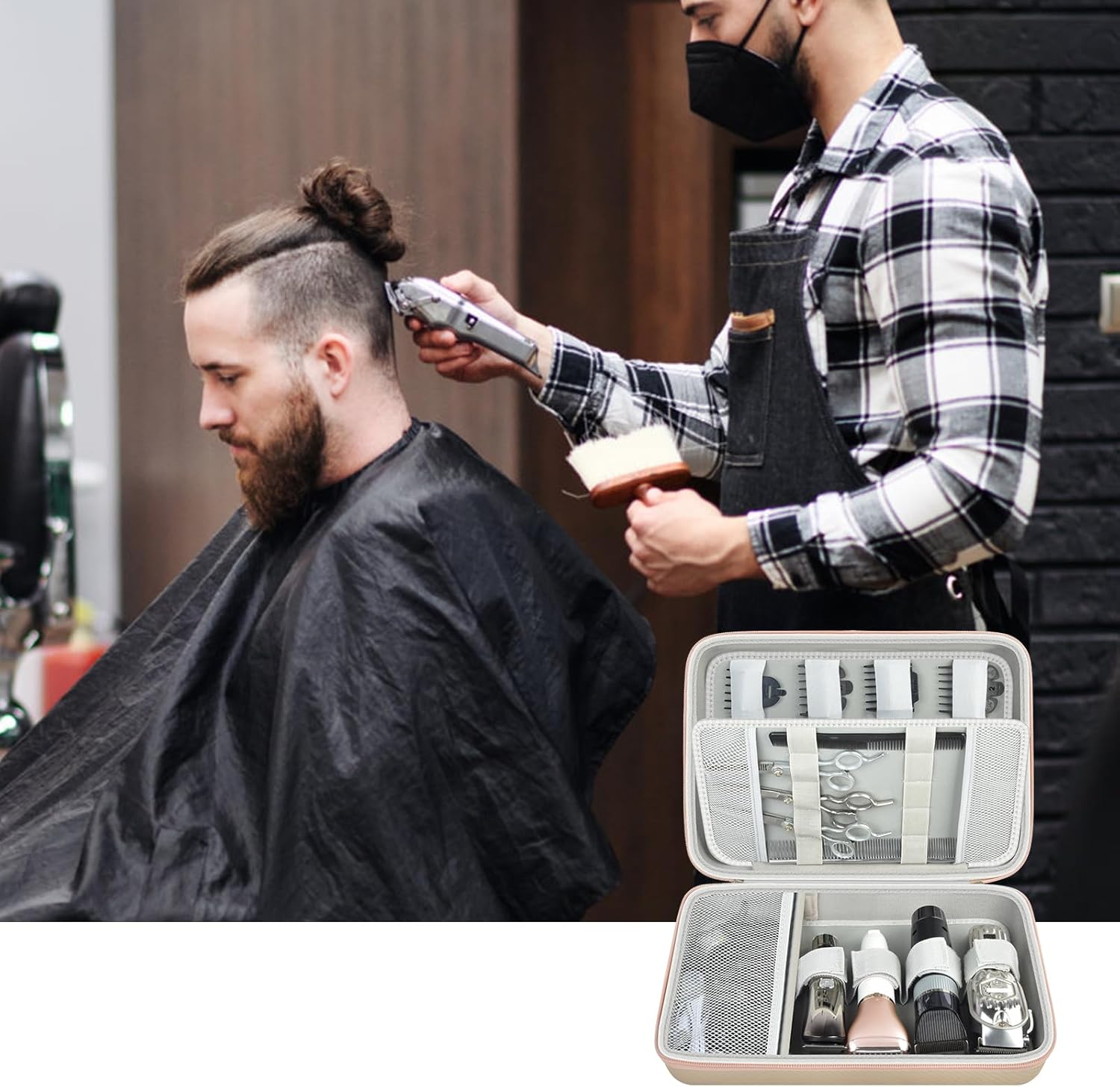 Boobowl Hard Travel Case for Hair Clippers, Hair Cutting Barber Supplies Organizer Bag, Trimmer Storage Holder for Ufree/for Wahl/for Andis Men Razor Guard Grooming Kits -Gold