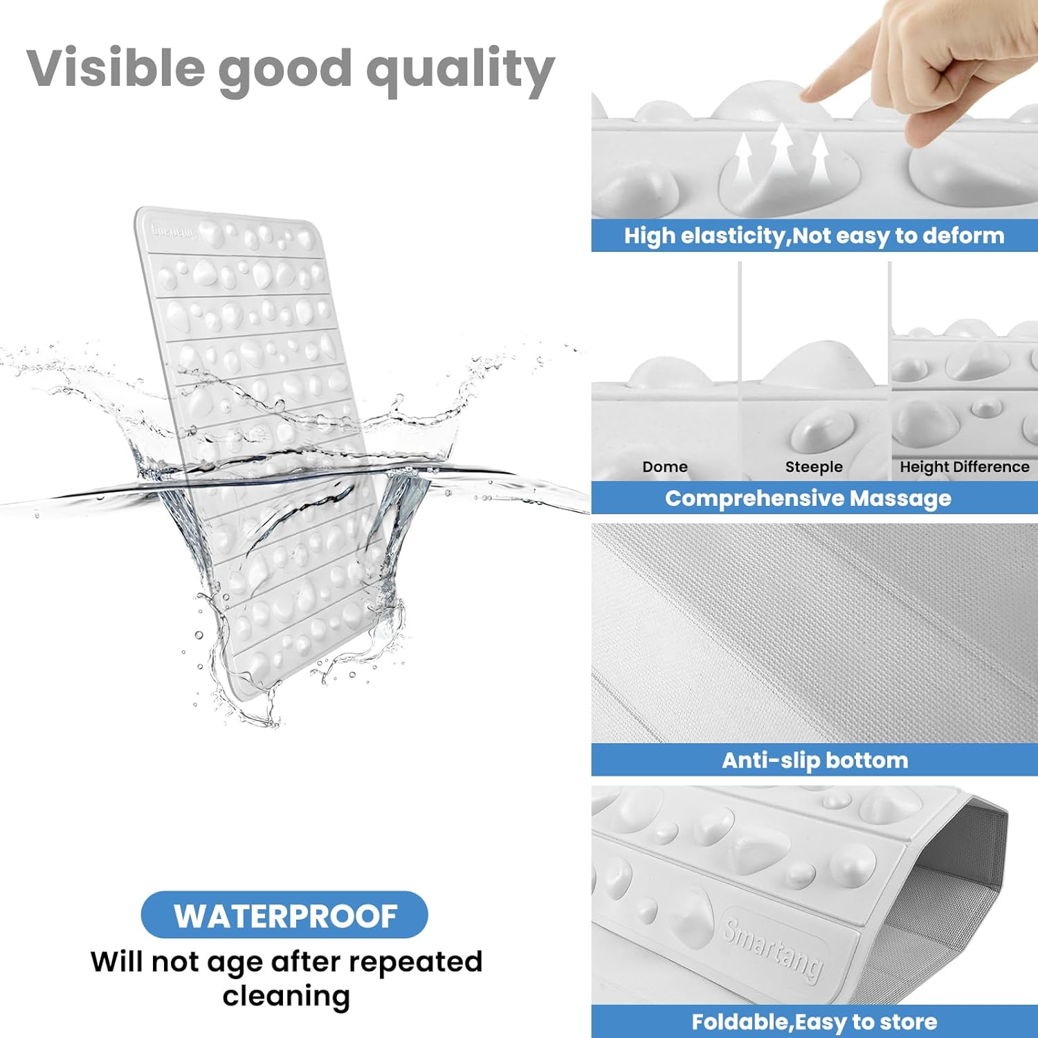 - 🦶【𝐍𝐞𝐰 𝐃𝐞𝐬𝐢𝐠𝐧】Foot massage pad adopts a high-rebound particle convex design and will not collapse.Compared with the pain caused by other hard plastic particles and rock mat,Smartang's foot reflexology mat allows you to perform foot massage comfortably.