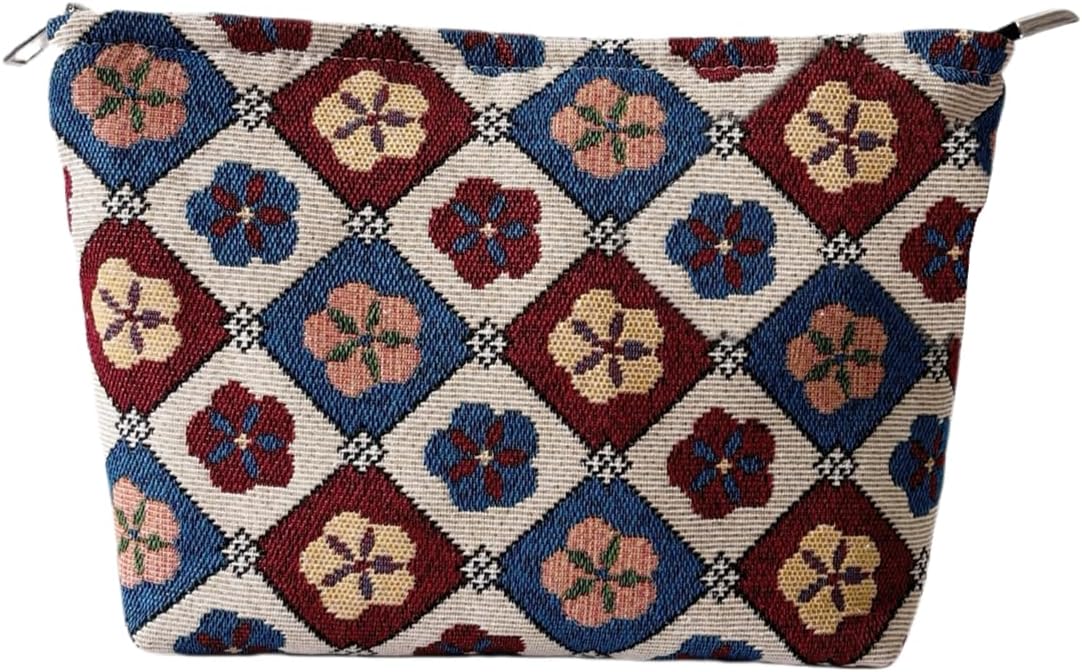 Vintage Floral Cosmetic Bag for Women, Makeup Pouch for Purse, Elegant Toiletry Organizer for Mature Ladies & Moms, Classic Pattern, Small Travel Zipper Bag
