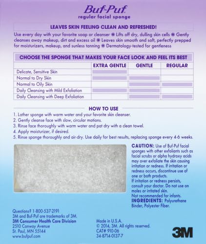 Buf-Puf Regular Facial Sponge, Dermatologist Developed, Removes Deep Down Dirt & Makeup that Causes Breakouts and Blackheads, Reusable, Exfoliating, White, 1 Count (Pack of 2)