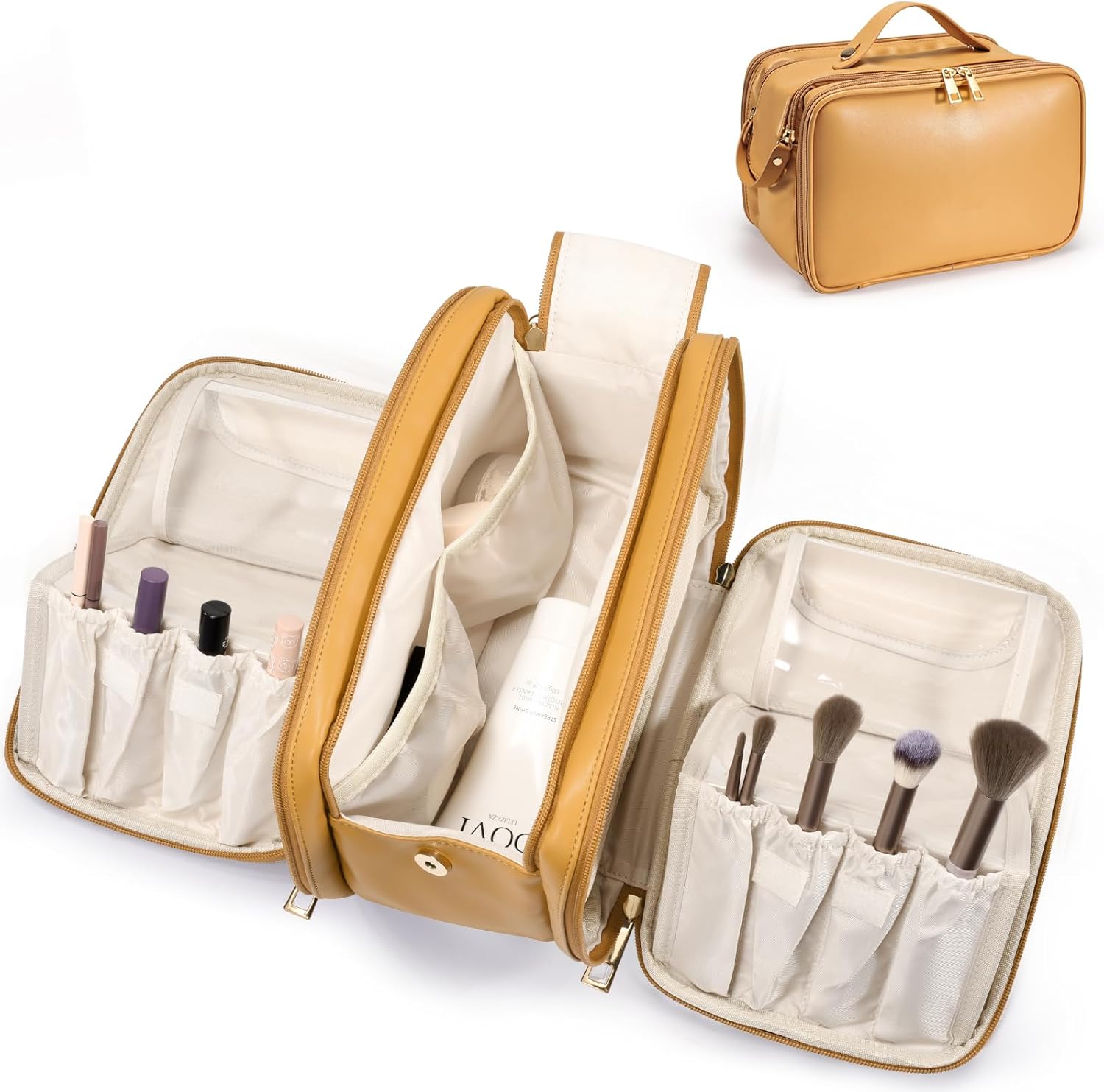- Easier Access: The large opening of the cosmetic bag allows you to see all your cosmetics at once, and the double zip design allows for easy and quick storage, and the top leather handle is easy to carry and comfortable to grip. Whether you are at home or on the go, it is your essential fashion companion