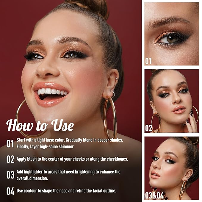 - 【All-in-One Face Palette】Features 24 richly pigmented eyeshadows, 6 blushes, 3 shimmer highlighters, 1 matte highlighter, and 2 contour shades. Designed to effortlessly create full-face looks for any occasion.