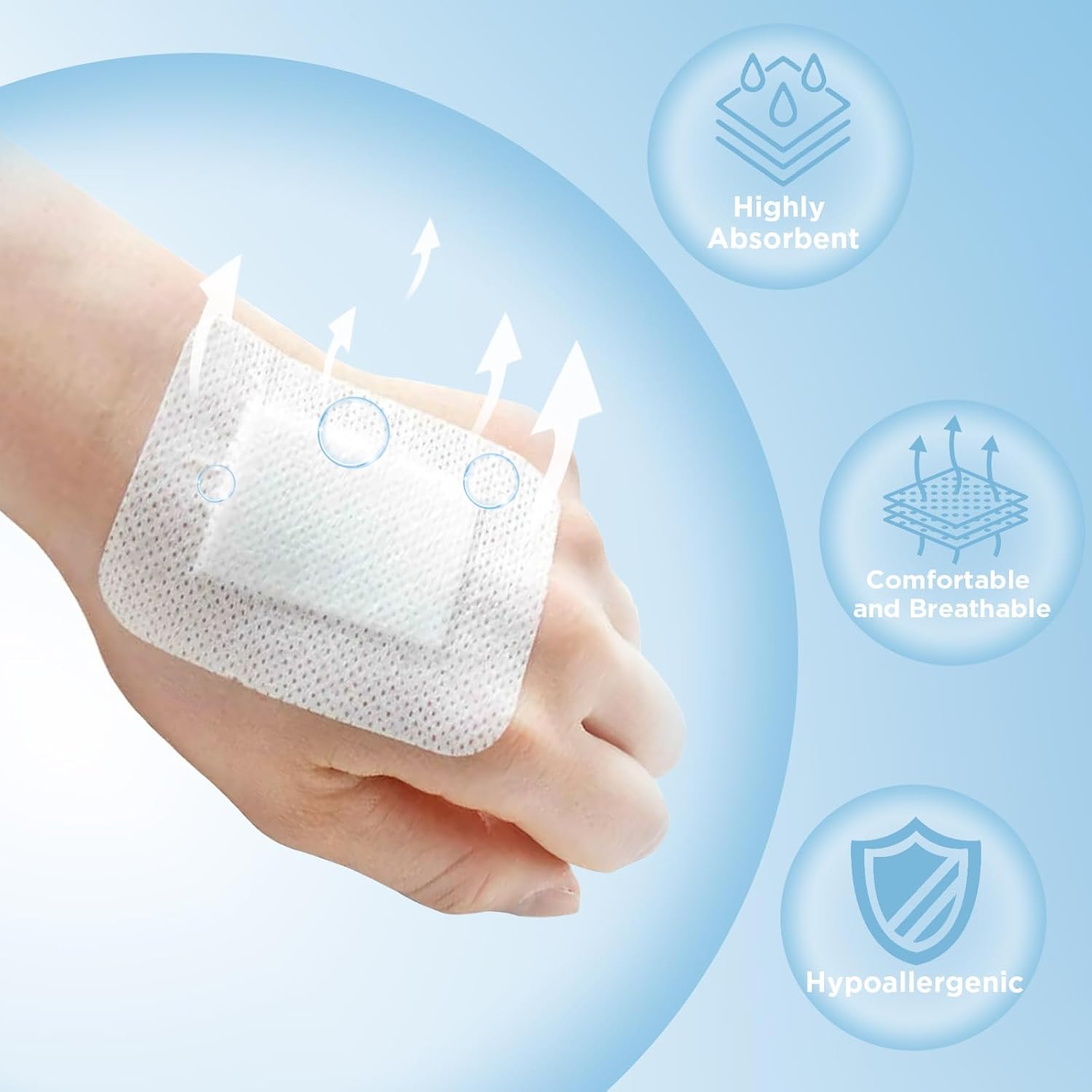 - [Breathable and Hygroscopic, Promotes Healing]:Non-Woven Island Dressing has good permeability, can efficiently absorb wound seepage, keep the wound dry, and provide a good healing environment for the wound.