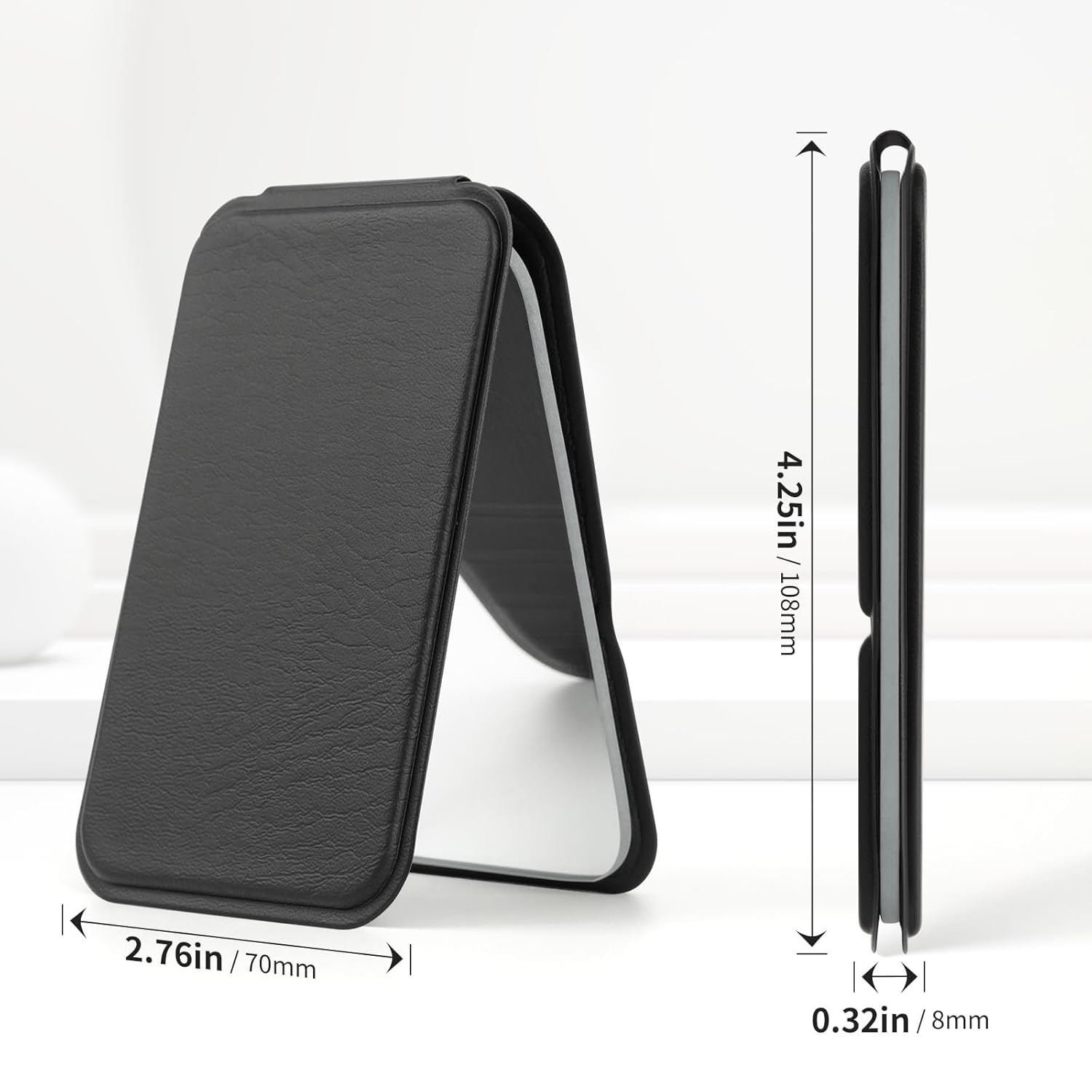 - Desk mirror : Measures just 2.76*4.25 inch and is only 0.32" thick when folded,suit for travel or camping.