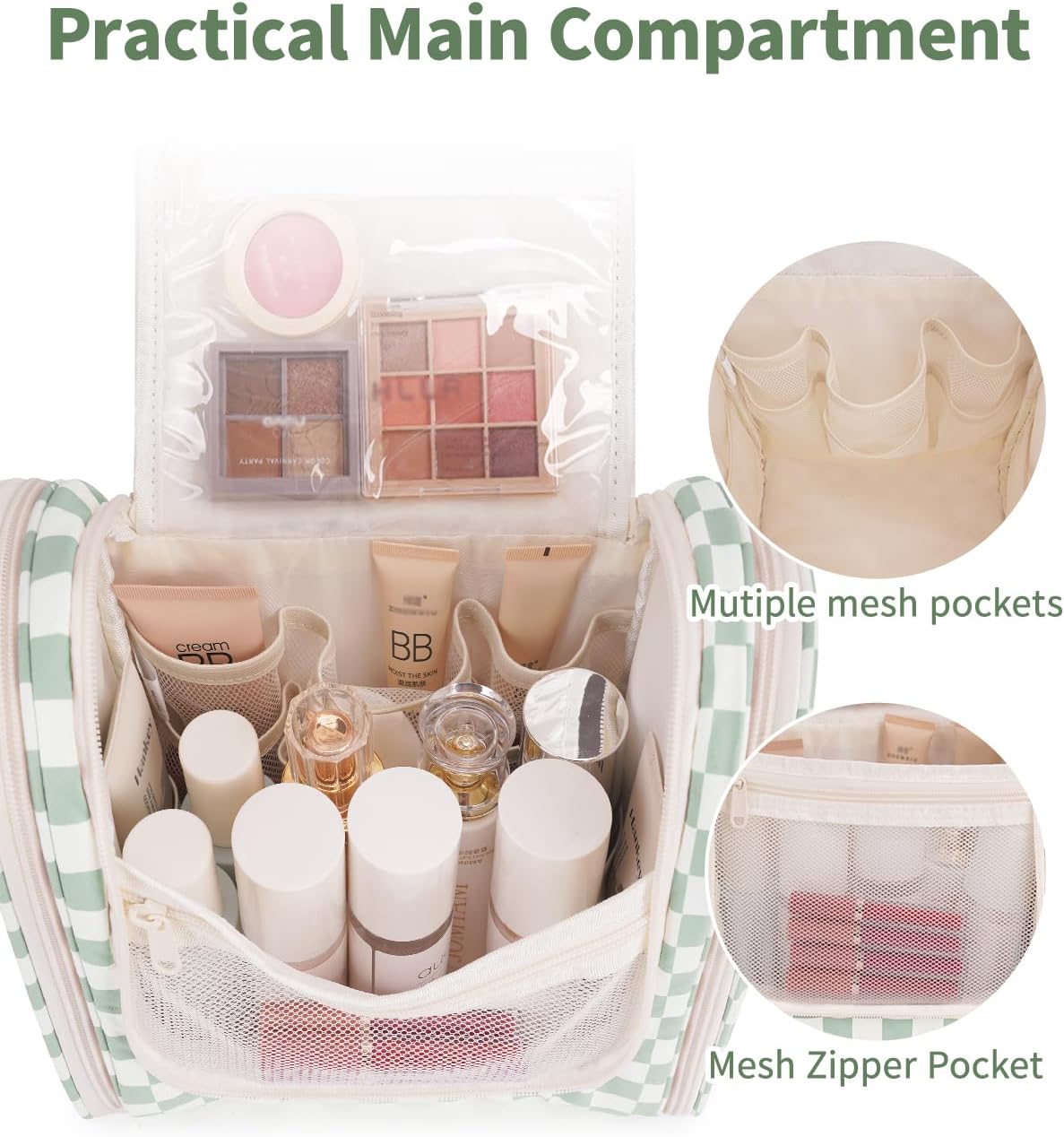 Narwey Checked Hanging Travel Toiletry Bag for Women, Travel Bag for Toiletries, Makeup Bag Organizer Cosmetic Bags Make Up Bags for Women (Mint Green Checkerboard)
