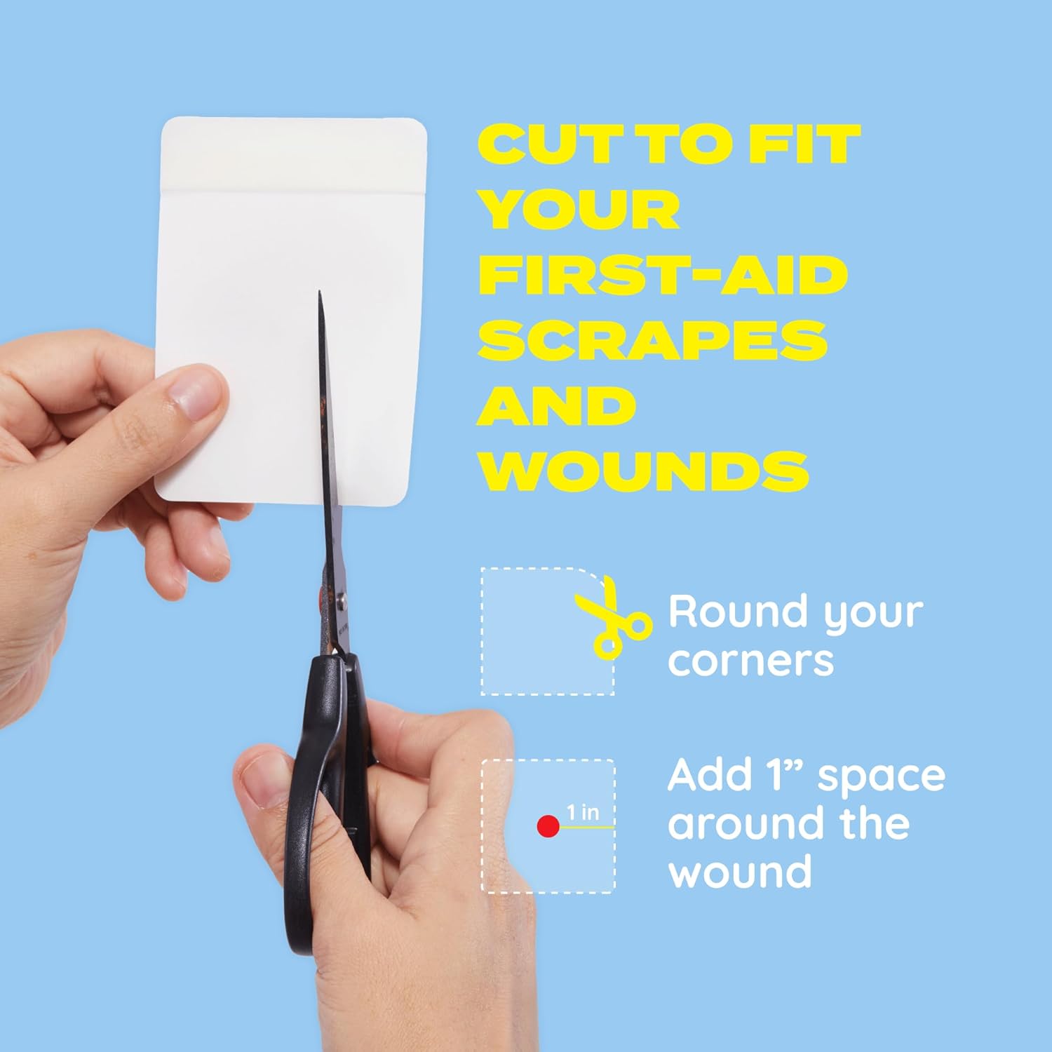- Customizable Fit and Flexible for Any Wound: Easily cut the bandage to fit any shape or size, providing tailored protection for blisters, cuts, road rash, and more. This breathable, thin bandage conforms to your skin for a barely-there feel for all types of wounds, for all types of skin, and for all ages.