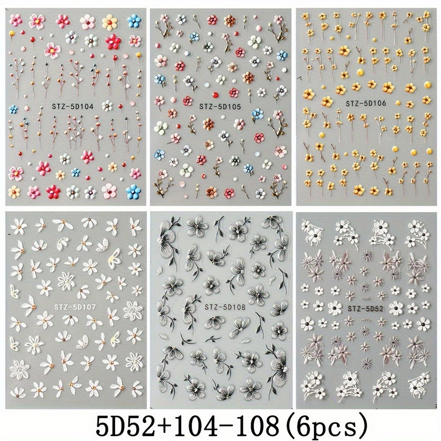 6 Sheets Flowers Nail Art Stickers Decals 5D Self-Adhesive Spring Colorful Embossed Floral Nails Decals Designs DIY Flowers Nail Stickers Supplies for Women Nail Art Manicure Decoration Accessories