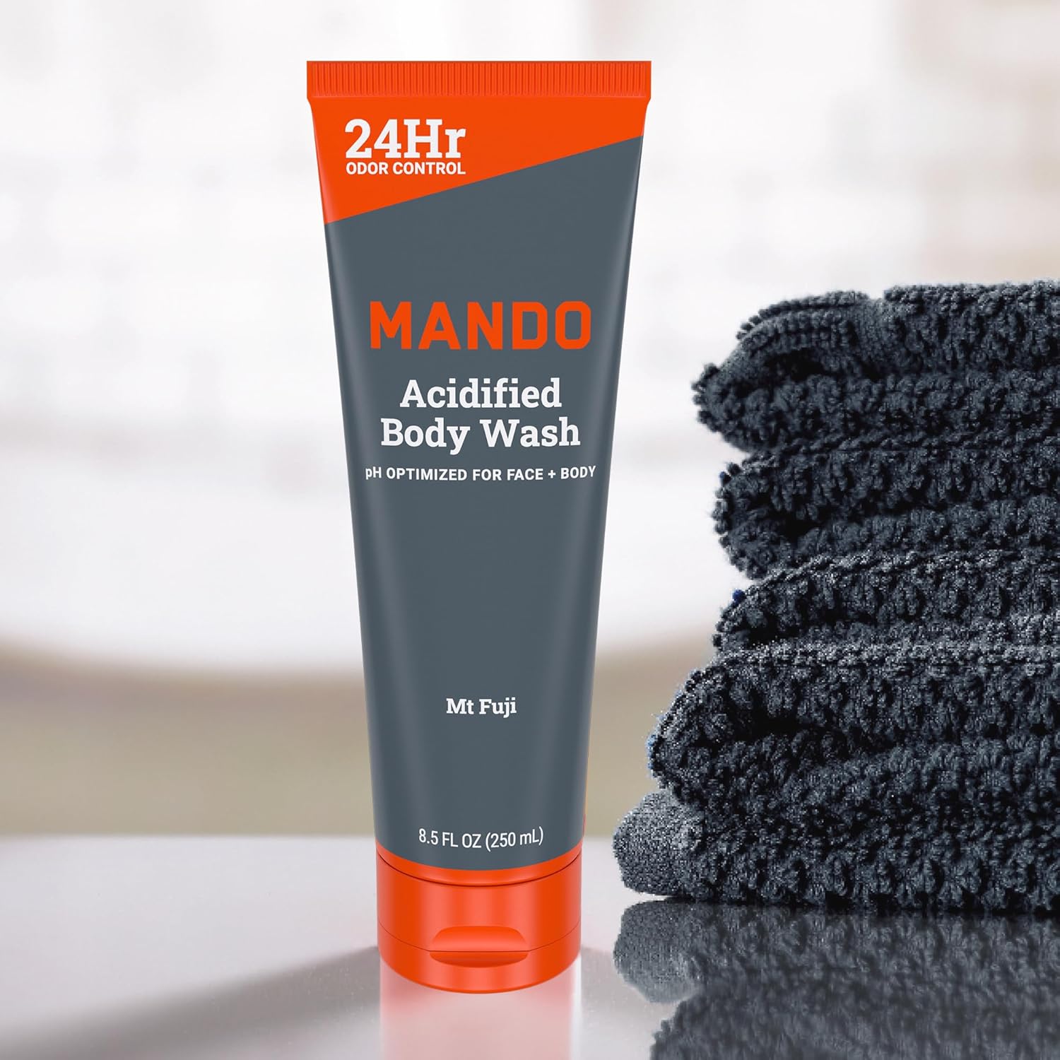 Mando Odor Shield Body Wash - 24 Hour Control - Removes Odor Better than Soap - SLS Free, Paraben Free, Skin Safe - 8.5 Ounce (Pack of 2) (Mt Fuji)