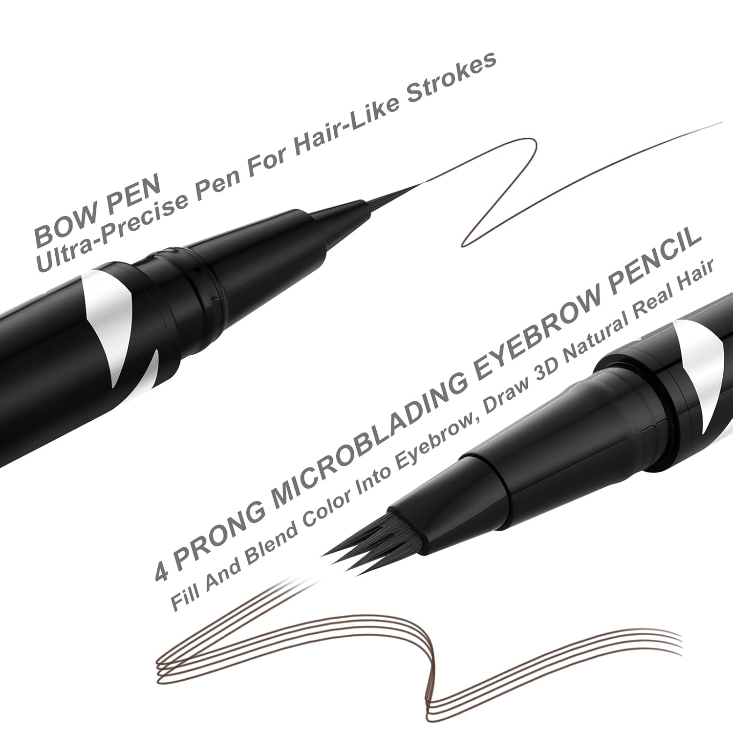 - 【Brow Pen】: LAVONE innovative 2-in-1 dual-ended eyebrow pen design with 4 tip microblading eyebrow pencil fill and blend color into eyebrows,draw 3D natural real hair, and ultra-precise pen makes realistic hair-like strokes & fill in sparse areas. It glides on easily and smooth to build natural looking, flawless, symmetrical and fuller brows with up to 24HR wear for brows. It’s long-lasting, smudge-proof, and waterproof.