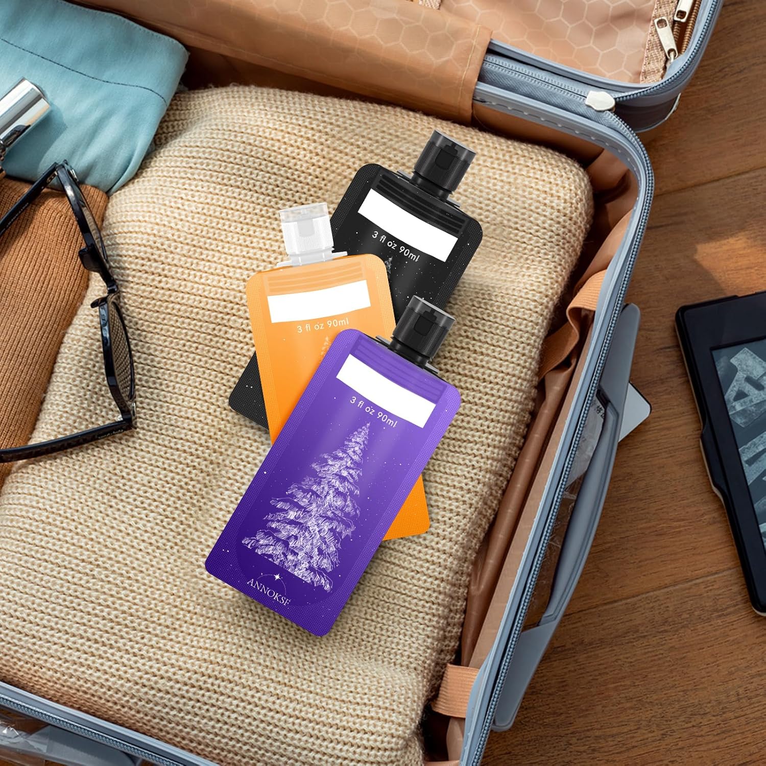 9 Pack Travel Pouches for Toiletries, Refillable squeeze Liquid travel pouches,Travel Shampoo and Conditioner Pouches,3oz leak proof travel pouches (Tree)