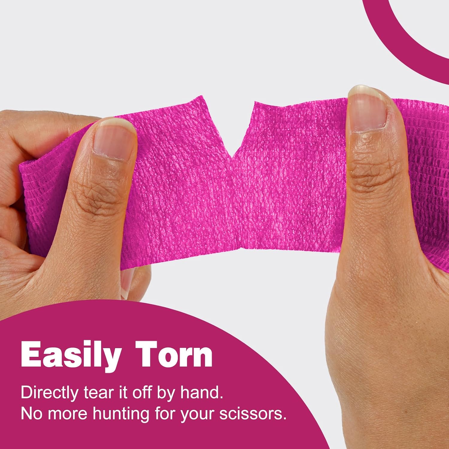 - Self Adhesive Bandage: Package includes 16 rolls of pink self adhesive bandage wrap. Each roll measures 2 inch wide and 5 yards long after stretching. It easily adheres to itself but will not stick to other surfaces such as skin or hair, making it easy to pull off and change bandages