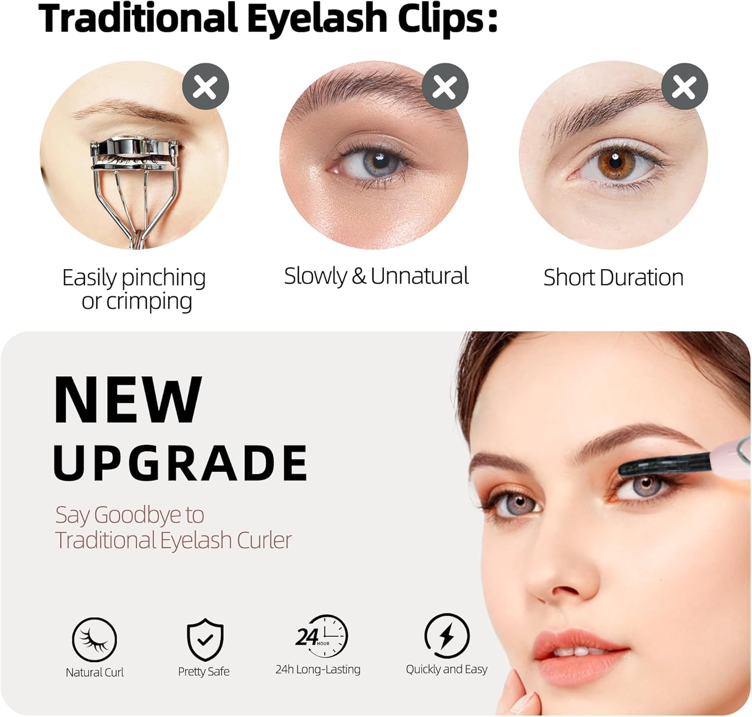 - 【Compact and Portable 】This electric heated lash curlers with exquisite and elegant design, just like a dancing girl. Fits naturally in your hand, and also fits neatly into your makeup case, gym bag. Our electric lash curler is made of Alloy heating core, only 10s pre-heating, achieve 24Hrs Long Lasting Curled Lash. Type-C Fast Charging, supports various charging methods such as,On-board USB,Power Bank. Perfect to take it to anywhere you need and curl your eyelashes as you need.