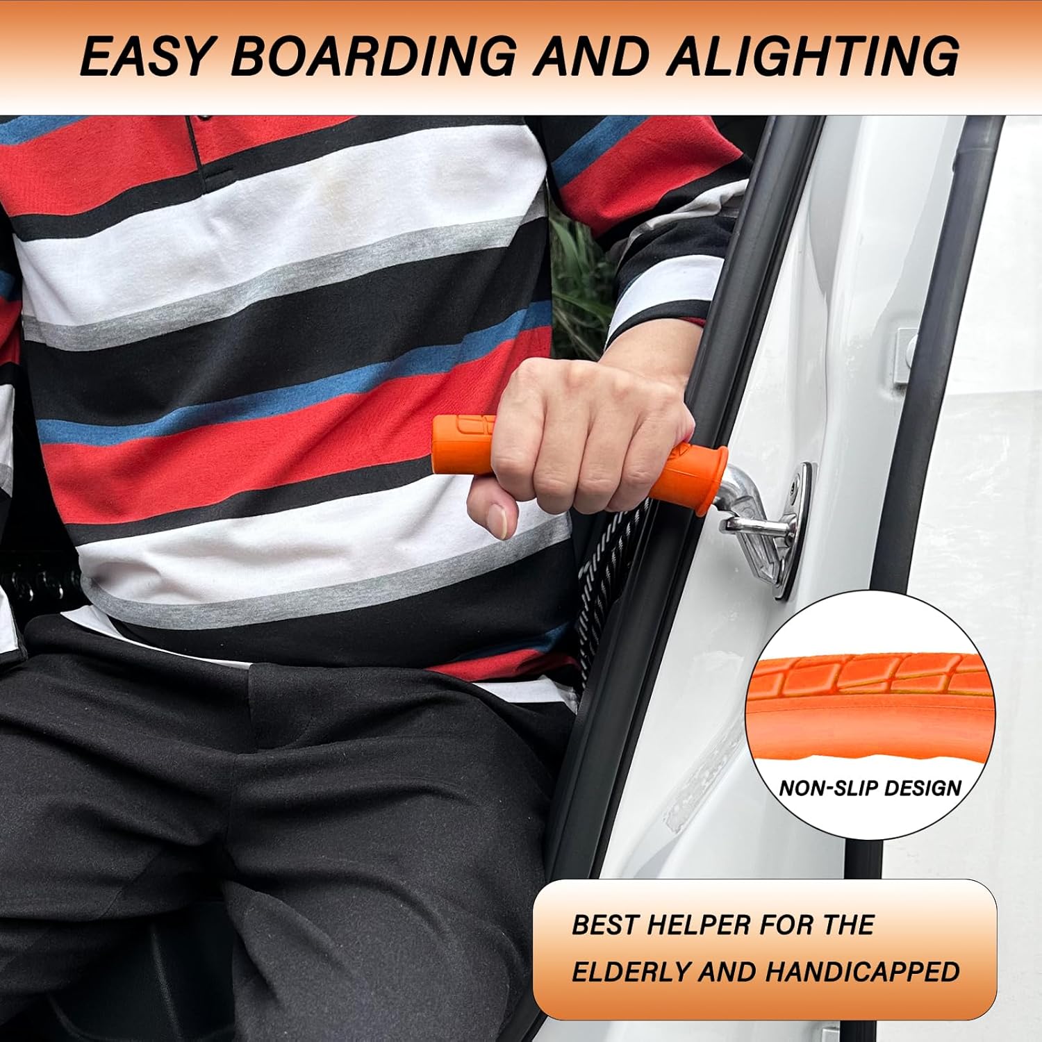 - 【EASY DISEMBARKATION】The car door handle provides strong support and stability, allowing you to get in and out of the car independently and safely. getting in and out of the car is easy without the assistance of a caregiver. this support handle is made of solid, high-quality steel and can hold up to 450 pounds.