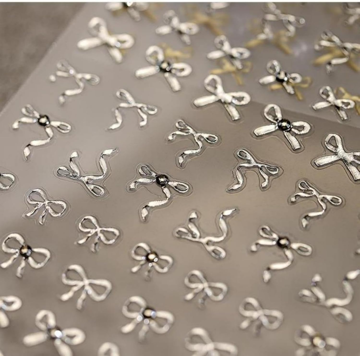 - Widely Used: Silver bow nail stickers.In addition to nail design,love manicure decoration nail stickers can also be used for rich DIY creation.You can decorate it in mobile phone shells, bags, pictures,cup,face and so on,it is full of fun,it is the feeling of life.You will get multiple happy experiences with our decal stickers