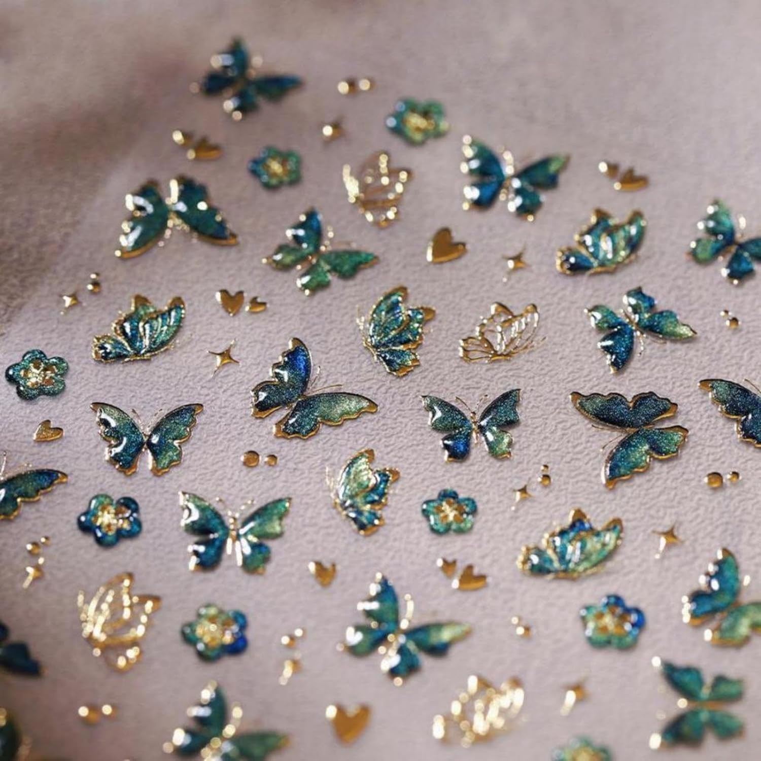 - Suggestion:Our green butterfly nail stickers.If you want it to stay in place for a long time, do not touch the water immediately after sticker the nail art decals