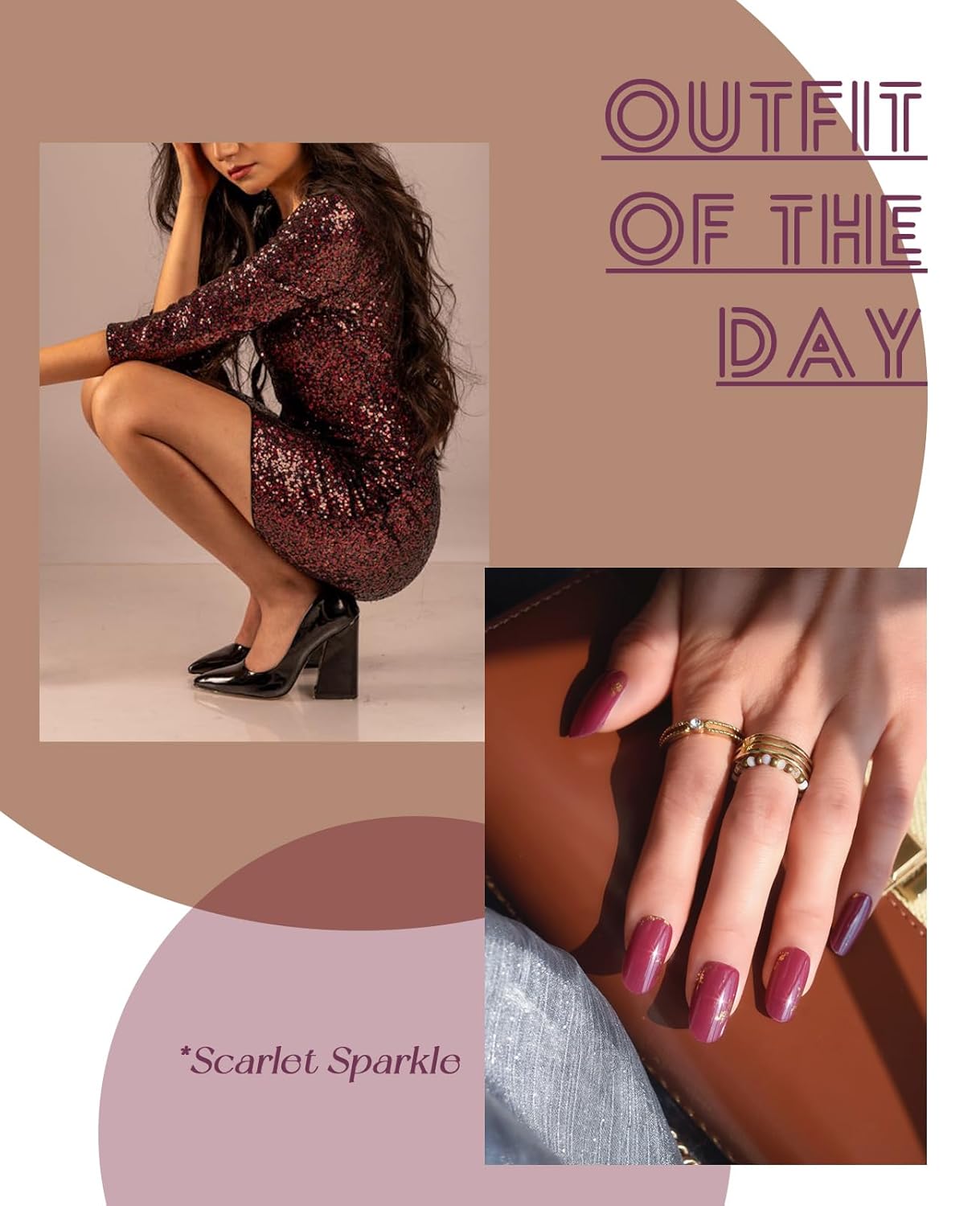 Semi Cured Gel Nail Strips, 20 pcs Nail Wraps, Glaze Stickers, Salon Quality French Manicure, Full Decal Gel Polish Strips, Long Lasting SCG, Easy on, UV Required (Scarlet Sparkle)