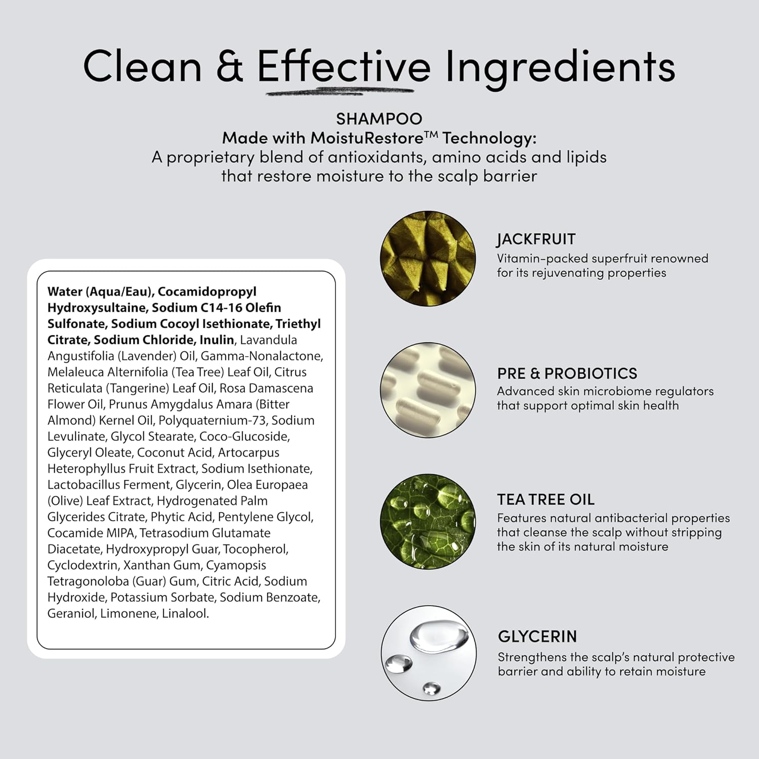 - EVERYDAY HYDRATION SHAMPOO & CONDITIONER: This moisture-rich shampoo and conditioner set works in harmony to deeply hydrate from root to tip, leaving hair soft, silky, and manageable. Powered by Tea Tree Oil, MoistuRestore Technology, prebiotics, essential lipids, and proteins, it delivers lasting hydration and reduces hair breakage by over 82%.