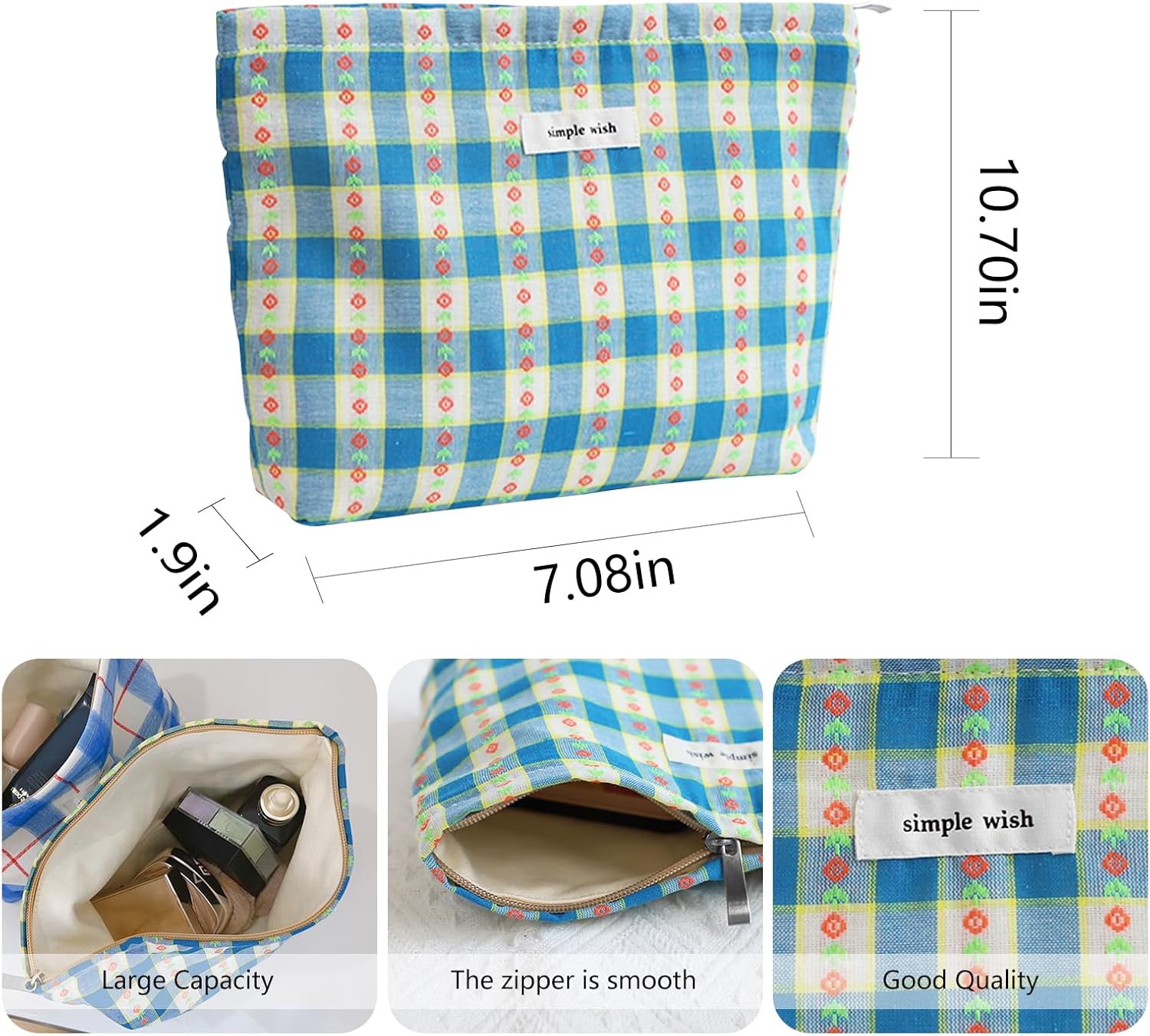 - Perfect Size: Our makeup pouch offers plenty of space to store all your makeup essentials, ensuring you have everything you need. Reliable zipper closure keeps your cosmetics safe and prevents any leaks or accidents, giving you peace of mind during travel or daily use.Size:10.75x7.5 Inches