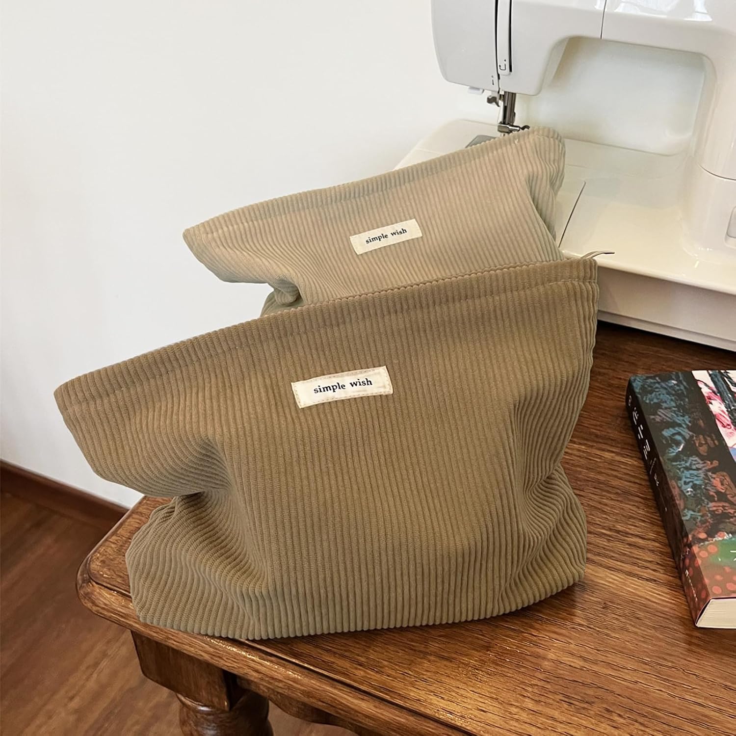 - Quality Materials: Our cosmetic bag feature a double-layer design, with an outer layer made of high-quality corduroy fabric and an inner layer made of durable canvas, which is not only durable but also soft to the touch, giving it a luxurious feel