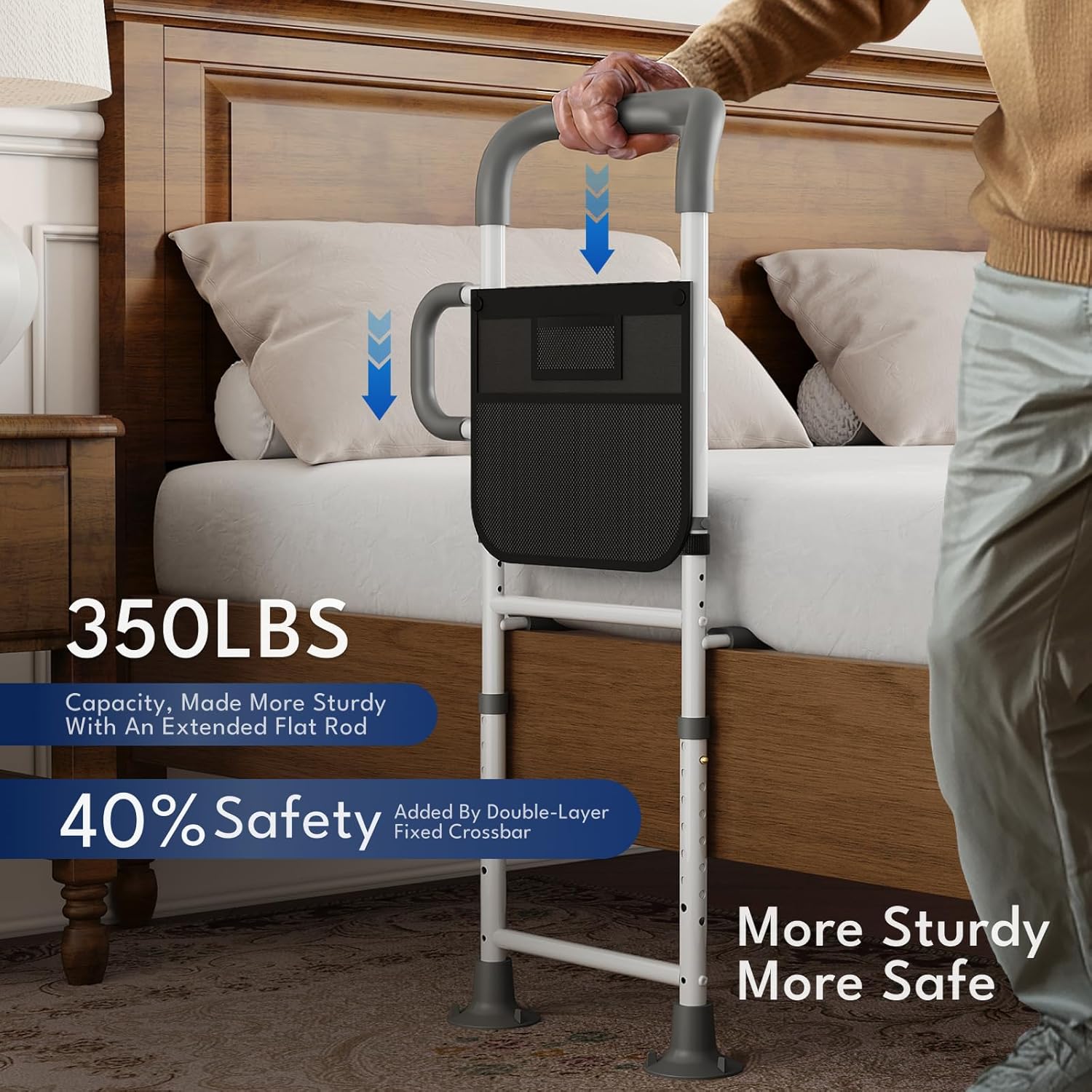 - Dual Ergonomic Support, Bedside Assistance:The bedside assist design specifically for seniors living at home or in assisted living facilities, boosts independence and mobility. Designed for adults, seniors, and those with mobility challenges. Newest dual grip ergonomic support with soft non-slip handle aids for getting in and out of bed easily and secure. It is a thoughtfully gift for parents, family members, or anyone under ward care.