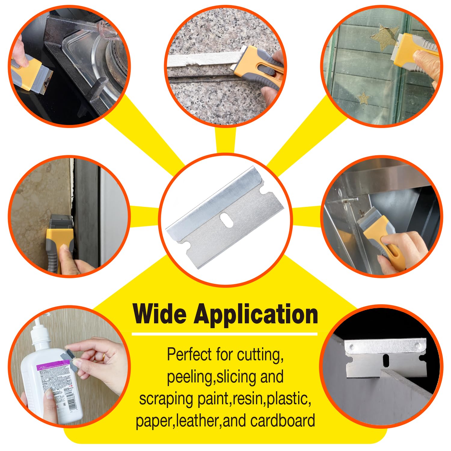 Great Andrew Single Edge Razor Blades, 200 Pack Straight Edge Razor Blade Safety Refills Blades Scraper for Box Cutting, Crafts, DIY, Heavy Duty & Industrial Use