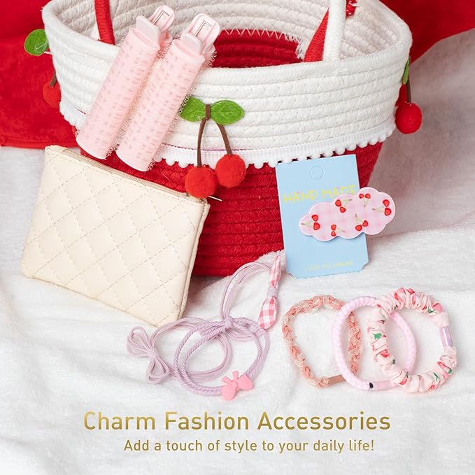 - Stylish Bags: The PU quilted bag and the cherry-shaped small bag are both attractive and practical. They can be used for storage or as an accessory when you go out, enhancing your overall style