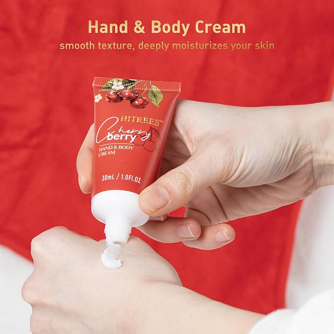 Spa Gifts for Women, Cherry & Berry Spa Gift Set for Teenage Tote Bag, Shower Gel, Hand & Body Lotion, Hitrees Birthday for Best Friend Woman, Mom, Mothers Day