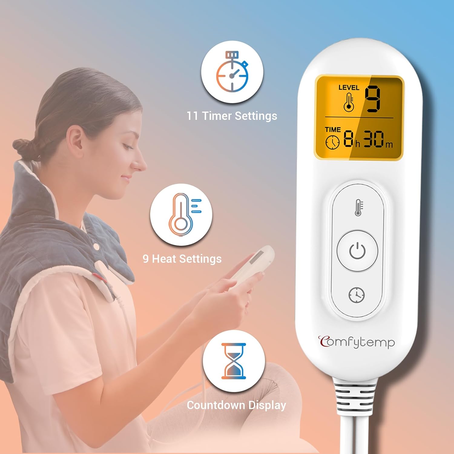 Comfytemp Heating Pad for Neck and Shoulders and Back, Weighted Electric Heat Pad for Pain Relief, 2.6lb Large Heated Wrap, 9 Heat Levels, 11 Auto-Off, Gifts for Women Men, Dark Blue