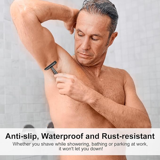 - Precision Engineered Perform: Fully upgraded precision engineered stainless steel non-slip handle is wider and heavier. We have also optimized the cutting angle to reduce razor burn. Gun black metal coating ensures waterproof and no rust. Whether you shave in the bathroom, the shower, traveling, or the parking lot at work, this metal safety razor will make your daily shaving routine easier
