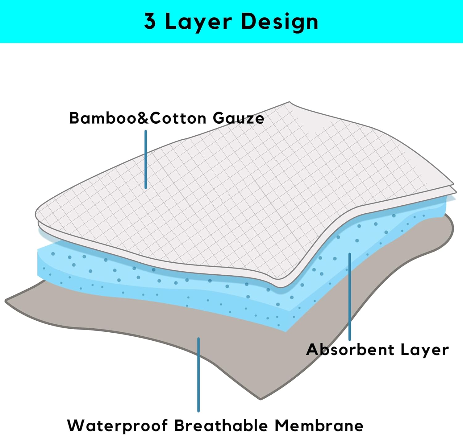 - 3-Layer Design & Machine Washable: bamboo & cotton blended gauze layer on front which is super absorbent and skin friendly, absorbent layer in middle, waterproof breathable membrane on back to attach to clothes. Bye-bye armpit sweat rings. This reusable armpit sweat pads save you from tons of disposable ones and all those unrecyclable wastes.