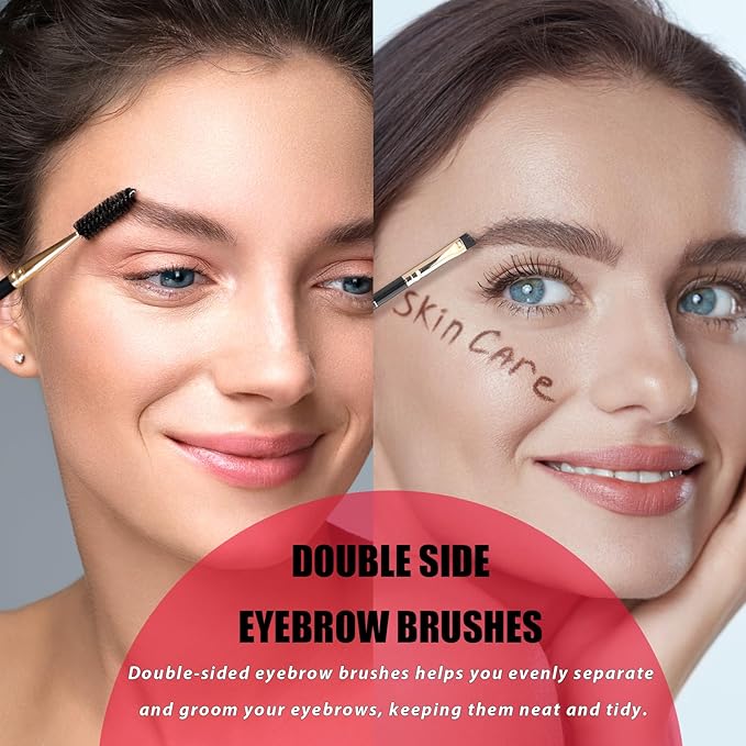 - 2 IN 1 Brow Brush - On one side is a professional grade angled brow brush for shaping and defining brows. On the other side of the brush is a high quality spoolie, use the spoolie to shape, blend and comb brows and lashes.