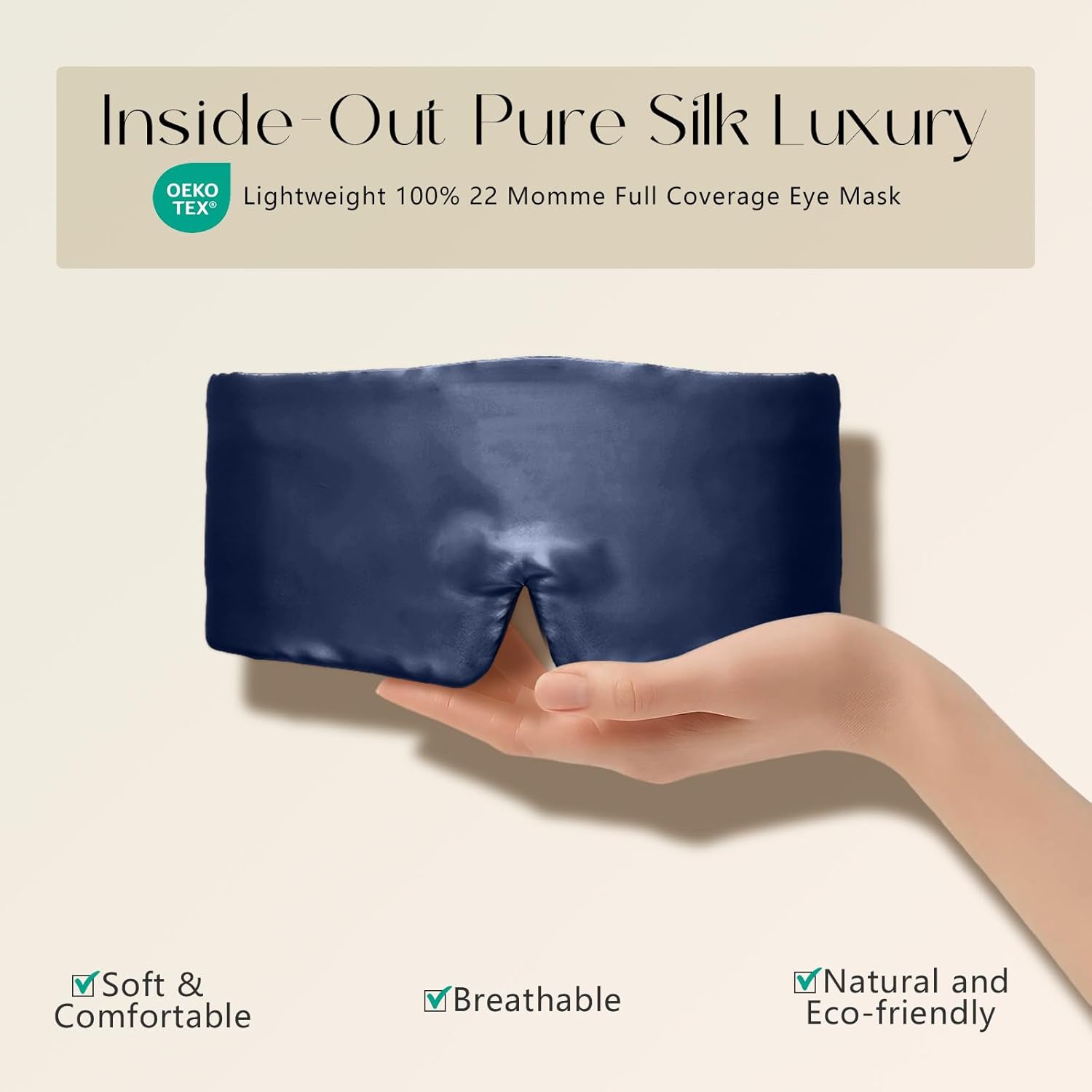 - ✅100% 22 Momme Grade 6A Luxury Construction: Crafted entirely from the highest-grade mulberry silk - including a silk-filled interior - this premium sleep mask delivers superior thickness, gloss, and durability. The full silk encasement ensures unmatched breathability, cloud-like comfort.