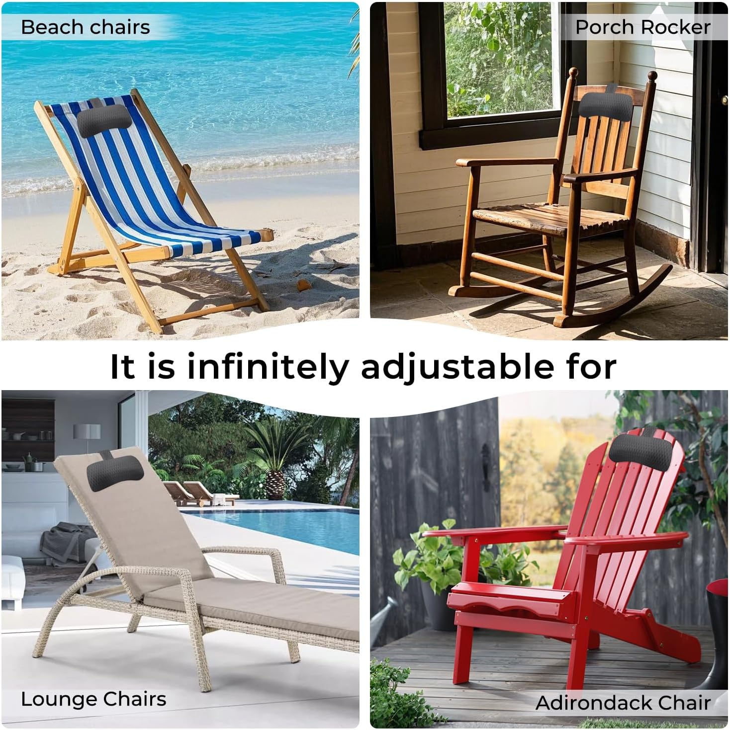 Headrest Pillow for Patio Chaise Lounge,Hot Tub Pillow for Headrest, Universal Height Adjustable Chaise Lounge Pillow for Sunbathing Swing Pool Furniture, Grey (Grey)