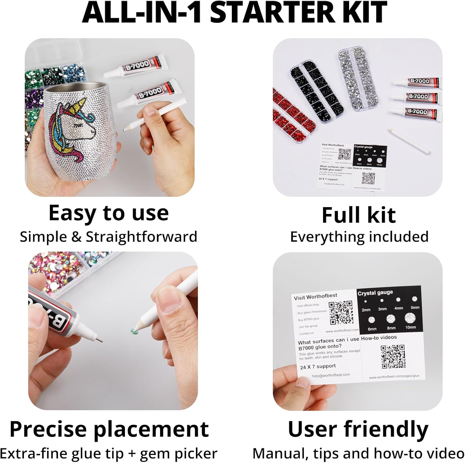 - Easy to Use -- This kit is designed to be straightforward, and versatile for various crafting projects. The manual is user-friendly and beneficial for both novice and experienced crafters. The complete and durable tools are suitable for precisely applying rhinestones to create intricate designs, with no additional tools required. Rhinestones are easy to apply and remove. The sturdy container with 25 grids keeps all rhinestones organized by size and color, making them easy to store and access
