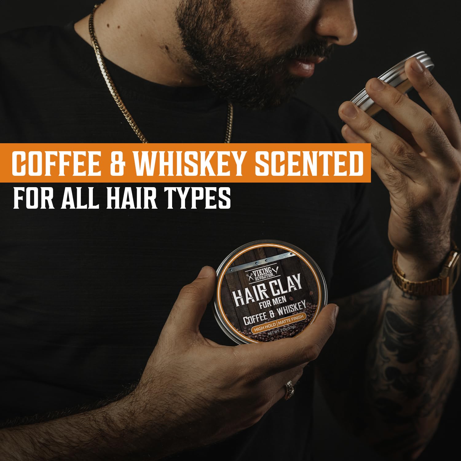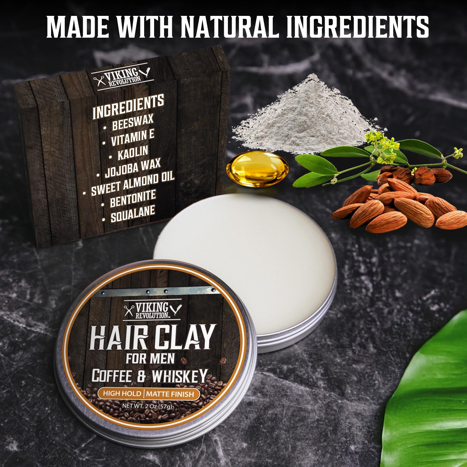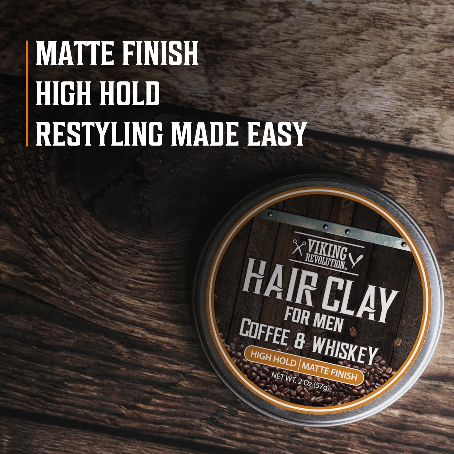 Viking Revolution Coffee & Whiskey Hair Clay for Men - Matte Finish, Texturizing Clay Pomade for Men with Jojoba Oil and Vitamin E - Effortless Hair Styling Cream - Strong Hold, Natural Finish (2 oz)