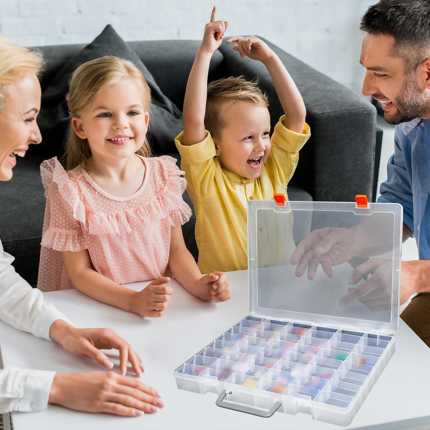 - Thoughtful Design: The 48 grids plastic toy storage case comes with a snap button closure, ensuring it securely shuts, and is easy to open; It also features a sturdy and comfortable carrying handle, ideal for easy transport and storage, whether traveling or organizing at home