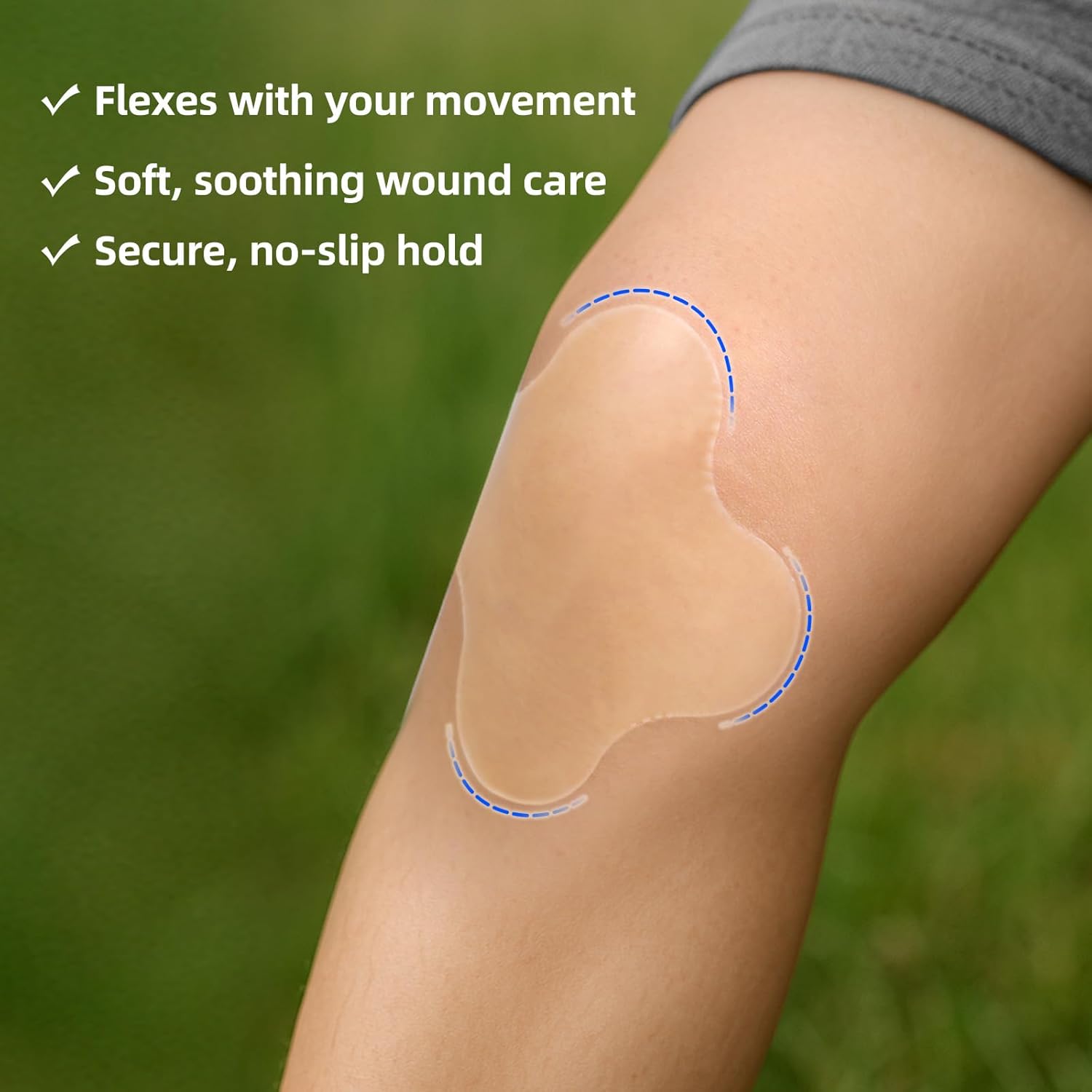 - UPGRADED GENTLE ADHESION - Stays secure on joints and high‑movement areas for up to 5–7 days with large hydrocolloid patches for wound care. Replace as needed based on wound condition.