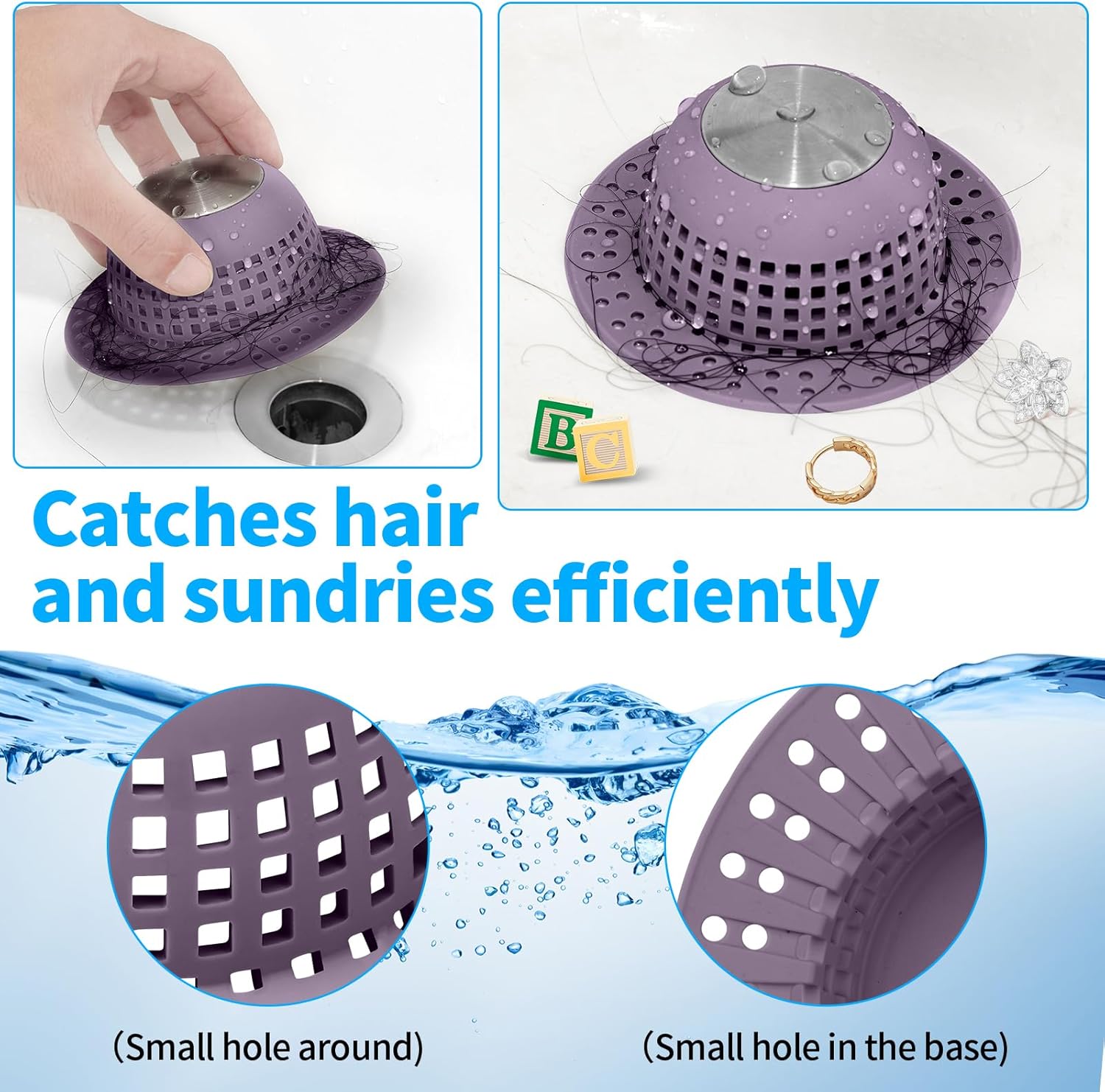 - Bathtub Drain Hair Catcher - Efficiently catches hair, rings, earrings while allowing water to drain and easy to use & clean.