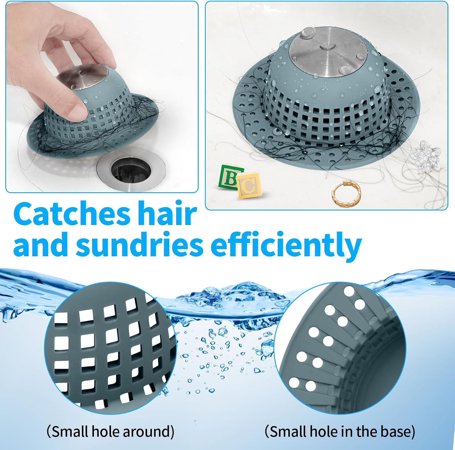 - Bathtub Drain Hair Catcher - Efficiently catches hair, rings, earrings while allowing water to drain and easy to use & clean.