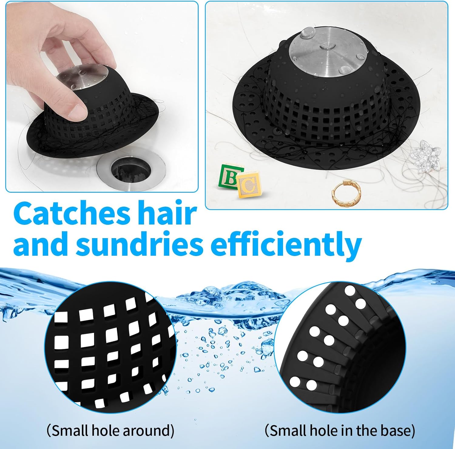- Bathtub Drain Hair Catcher - Efficiently catches hair, rings, earrings while allowing water to drain and easy to use & clean.