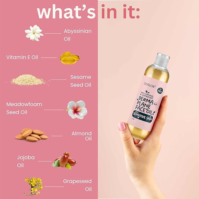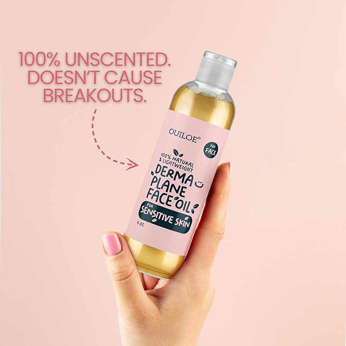 Dermaplane Oil for Women with Sensitive Skin - Face Shaving Oil - Non Comedogenic, Fragrance Free, Natural & Lightweight - Use with Dermaplane Razor for Women Face, 2oz by Ouiloe