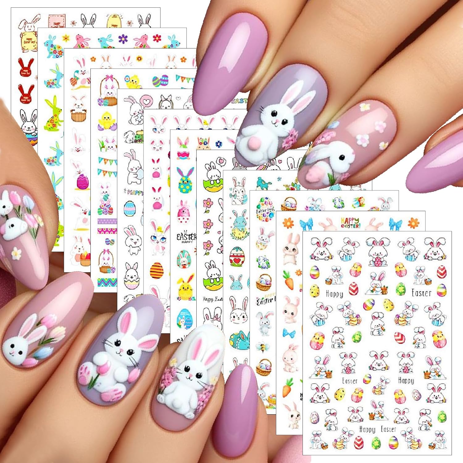 - Colorful Rabbit Self-Adhesive Design: 3D cute nail decals for nail art design is simple and quick to use, nail stickers work great on bare nails, they will stay on for a long time and will not peel off your nails, enjoy the feeling of nail art