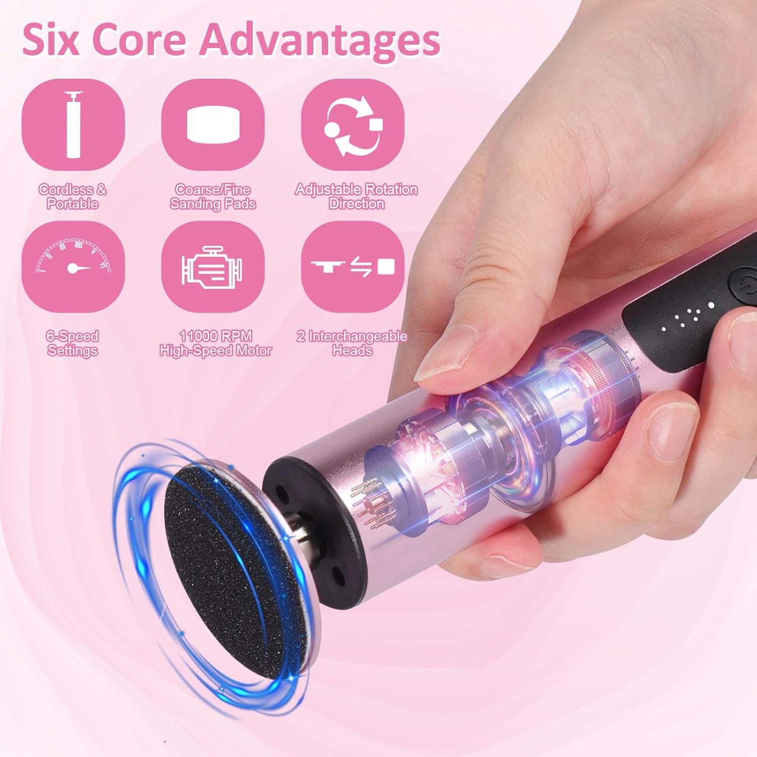 Upgraded Wireless Electric Callus Remover for Feet, 6-Speed 2-in-1 Rechargeable Foot File Callus Remover with USB Charging & 3 Types of Sandpaper, Dead Skin Remover for Dry Cracked Heels (Pink)