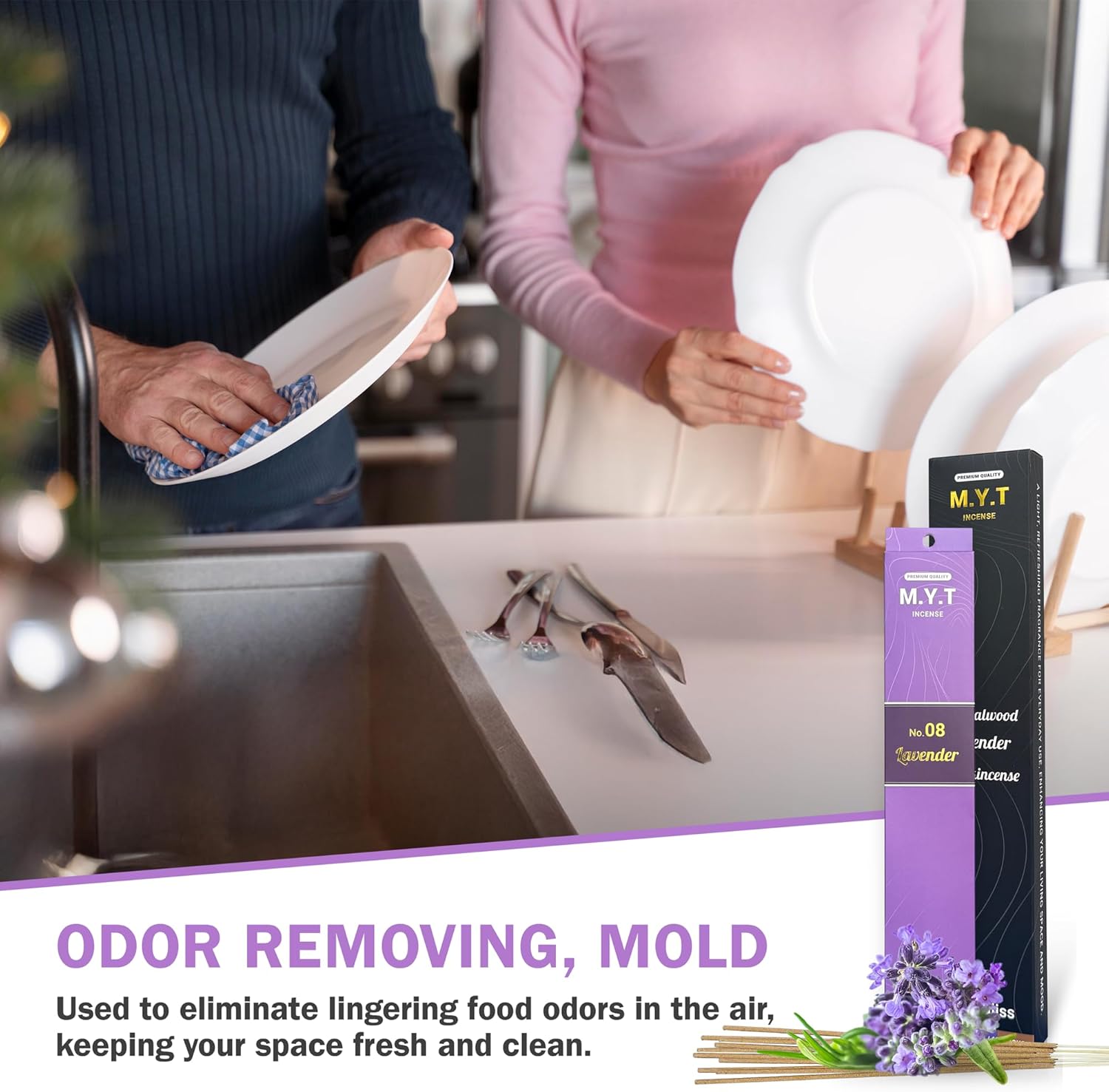 M.Y.T Natural Incense Sticks – Sandalwood, Lavender, Frankincense – Long-Lasting, Low Smoke – Relaxation, Meditation, Odor Removing – 60 Sticks